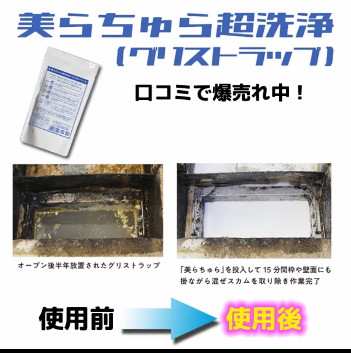 人と地球環境にやさしい強力グリストラップ用洗浄剤「美らちゅら超洗浄(グリストラップ)」は、沖縄生まれの技術を活かした業務用洗浄剤です。